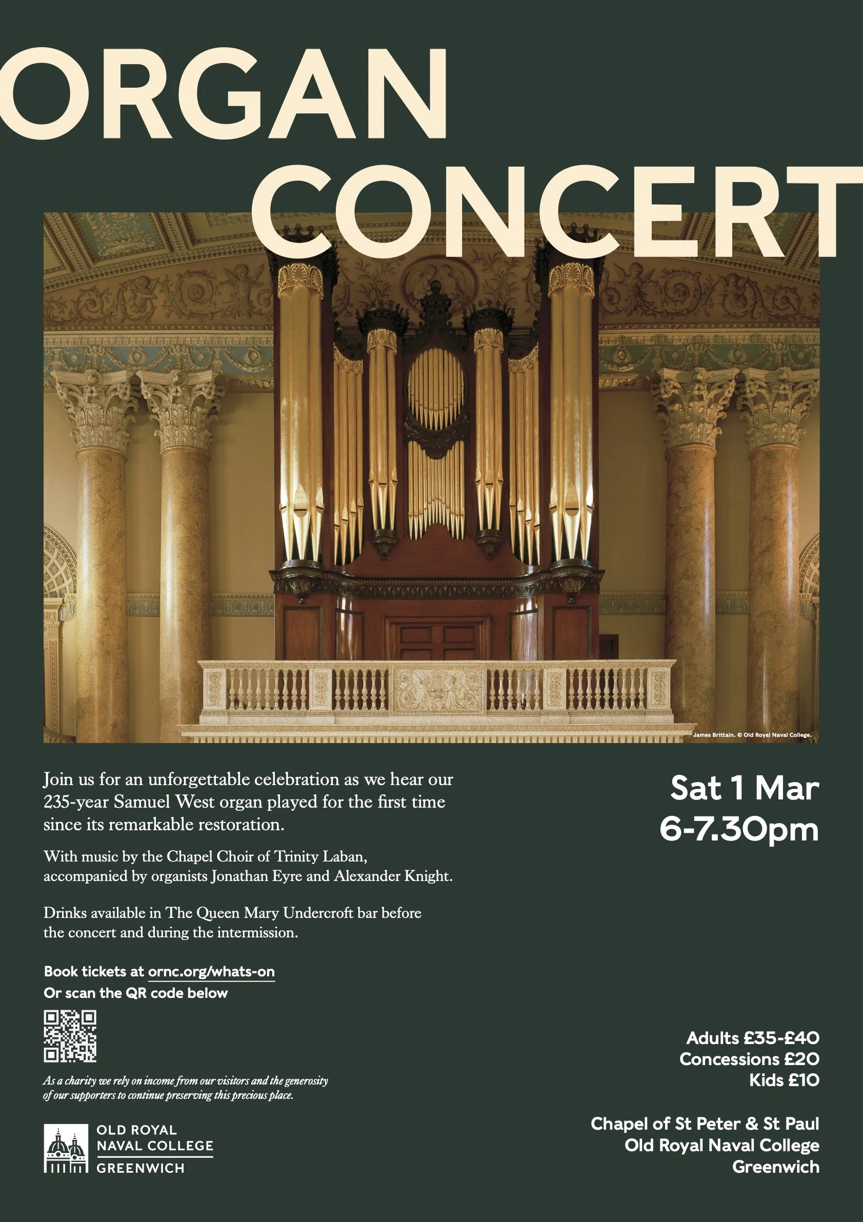 Old Royal Naval College Chapel: Greenwich, London - Saturday 1st March 2025, 6pm