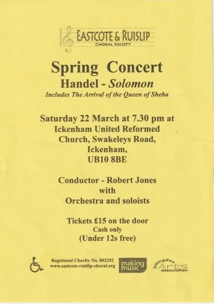 Tickets are available at the door or from a member of the Eastcote and Ruislip Choral Society (£15 - cash only. Under 12s free)