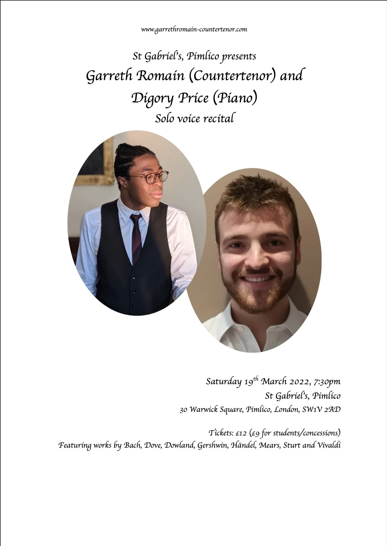 Solo voice recital by Garreth Romain and Digory Price